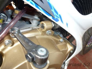 Pemilik Motor Satria F 150 ini adalah penggemar Dunia Otomotif khusus nya Motor.....Awal nya dari kejenuhan di bidang balap Drag Race yang sering di ikuti nya, Pemilik lebih dari 15 motor Drag dari berbagai macam merek ini mendatangi Variasi 53 dengan sebuah Motor Suzuki Satria F nya dan iseng iseng saja ....bilang mau modif ...tapi jangan ke mesin lagi ....Fashion saja Fashion ....yg penting penampilan .....naaahh proyek baru yang akan Kita garap ini akan Dipakai untuk motor Harian....Jadi tetap harus mementingkan Faktor kenyamanan pada saat di pakai....Konsep yang di hasilkan setelah berdiskusi adalah Fastech ...alias fashion berbasis teknologi yang akan di terapkan di motor Satria F ini ....Ide ini tercetus setelah sang pemilik memiliki ide yang cukup Unik untuk modifikator kita yaitu ingin memakai banyak Aksesoris ninja 250 di motor satria F nya ....Paling pertama di garap adalah Speedometer bawaan original satria F di pensiunkan dan di ganti dengan KOSO RX2, Speedometer Digital yang paling banyak di pakai di Ninja 250, kemudian Aksesoris yang kedua adalah Stabilizer Stang Kawasaki Ninja 250 dari KTC yang dipasangkan di Satria F150 ini....Wuiiihhh satria F pertama nihh yang pakai Stabilizer Stang Pendek.....setelah itu Modifikasi Dilanjutkan dengan Pemasangan Gear belakang KTC kawasaki Ninja 250 sekalian di kombinasikan dengan Rantai emas Dari Pabrikan Daytona Perpaduan warna emas dan merah yang akan menarik setiap orang yang melihat nya ....masih blum cukup puas juga ...Proyek dilanjutkan dengan Pemasangan Kopling Hydraulic KTC Kawasaki Ninja 250 di motor satria F 150 ini, tidak ketinggalan Step Underbone dari Yoshimura grafir adjustable berwarna hitam turut dipasangkan untuk mendongkrak penampilan Motor Satria F 150 ini .....untuk sektor pengereman kembali Dipercayakan Kepada Kaliper KTC 6 piston yang di pasang tidak hanya menggantikan kaliper original bagian depan bawaan pabrikan ....tapi tidak tanggung tanggung bagian belakang juga di pasang kaliper KTC 6 piston .....untuk Velg dipercayakan pada LHK yang di kombinasikan dengan Jari jari Pelangi dari Osaki......Masih merasa blum Puas ....Modifikasi akan dilanjutkan untuk mengganti beberapa parts lagi yang merupakan Ide jail dari sang pemilik untuk modifikator kita....( sebelum nya di dunia drag race juga Sang pemilik sempat memadukan mesin Honda CB dengan Satria F 150 )....jadi Ditunggu saja Proyek selanjut nya bagian apa dari Ninja 250 yang akan dipasangkan lagi di satria F ini ......Mohon maaf ....Foto yang kita dapatkan tidak dalam Kondisi Prima alias bersih kinclooong .....maklum musim Hujan susah dapat motor keadaan Mengkilap ......[Variasi 53]